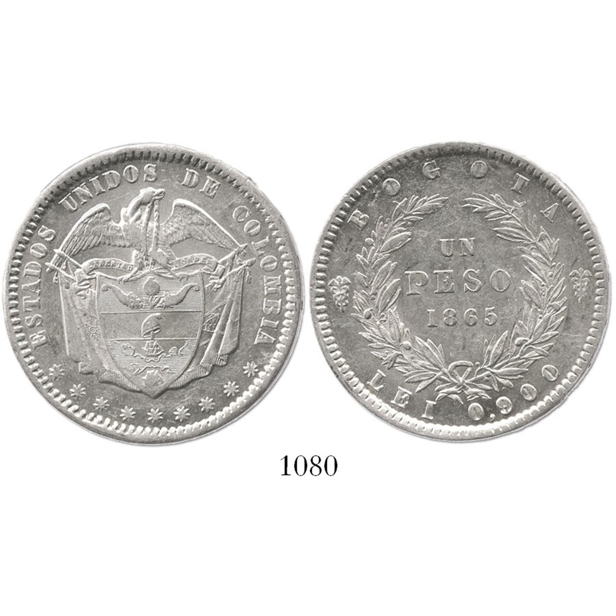 Bogota, Colombia, 1 peso, 1865.