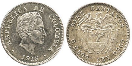 Bogota, Colombia, 10 centavos, 1913.