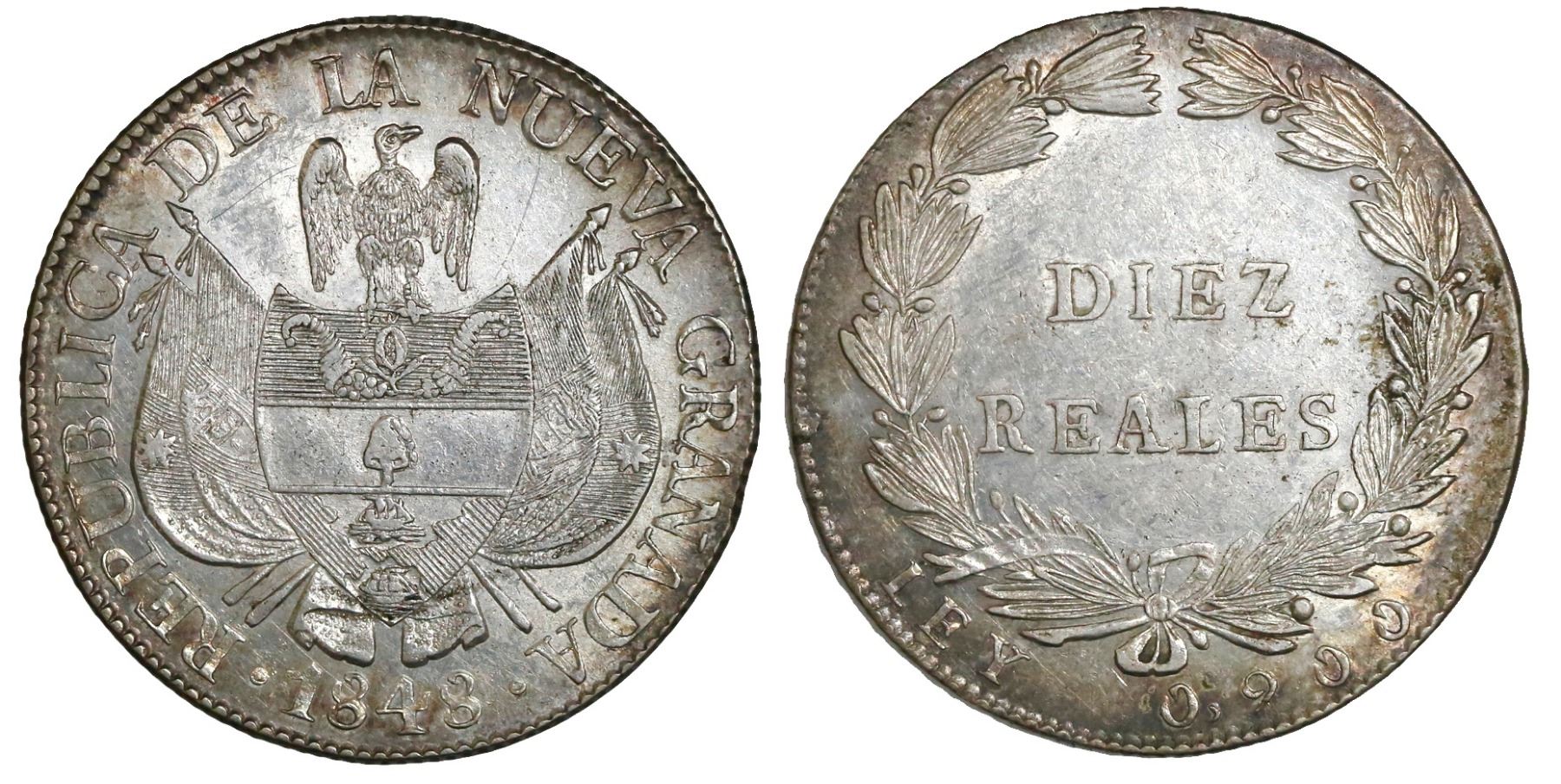 Bogota, Colombia, 10 reales, 1848.