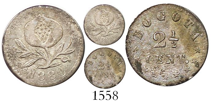 Bogota, Colombia, 2-1/2 centavos, 1880.