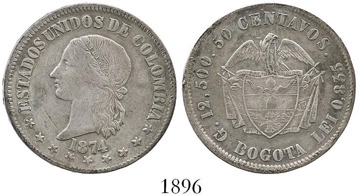 Bogota, Colombia, 50 centavos, 1874.
