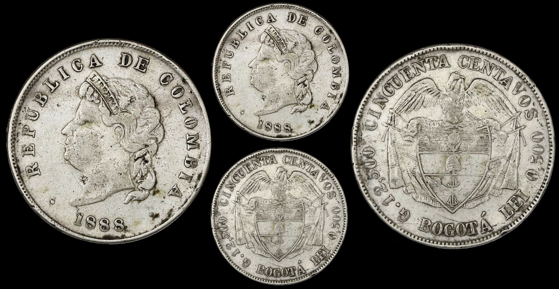 Bogota, Colombia, 50 centavos, 1888, "Cocobola" bust, very rare, PCGS VF30, Restrepo Plate Coin (stated on label). Restrepo-405.2; KM-185. Honest wear for the grade, very lightly toned, with minor edge-bumps and generally low contrast but all details clear, with desirable pedigree. This coveted second date of the famous two-year "Cocobola" type, featuring a distinctive Liberty bust unauthorizedly modeled after the President's wife, is almost never seen, as only a few (Restrepo says five known) were issued in 1888 before the striking was halted and recalled. The only other certified example we could positively trace is “details” graded, making the present coin a unique opportunity to acquire a straight-graded example of this popular rarity. We expect a lot of interest from advanced collectors! The nickname "Cocobola" has an interesting origin: The area known as Panama, which after Independence became part of Colombia, often found itself in a state of revolt, and one of the worst was in March 1885, when the Colombian general Pedro Prestan led a revolution in the city of Colon against the regime of Colombian president Rafael Nunez, who was working toward a more centralized and authoritarian Colombian nation, culminating in the abrogation of the "Rionegro" Constitution of 1863 and the formation of the new Republic of Colombia in 1886, in no small part due to the influence and machinations of the First Lady, Soledad Roman. Prestán's revolt, ostensibly opposing the involvement of the United States of America in the conflict (the US's interest, of course, being the construction of a canal connecting the Pacific Ocean to the Caribbean Sea), employed two Caribbean liberals, the Haitian Antoine Pautricelli and the Jamaican George Davis, to burn down the city of Colon. George Davis, later hanged for this crime, was better known as "Cocobolo." When the first new half dollars of the Republic of Colombia came out in 1887, using the same unpopular reduced fineness (50% silver) that had been ordered by Nunez in 1885, but also with the portrait of his wife, his opponents took the opportunity to mock the use of Soledad's portrait on the coins and recall the Panamanian revolt by nicknaming the coins "Cocobola" (feminized version of Cocobolo). PCGS #39227629. Pedigreed to the Nueva Granada Collection (stated on label), and Plate Coin on page 234 of Restrepo's Coins of Colombia (2012).