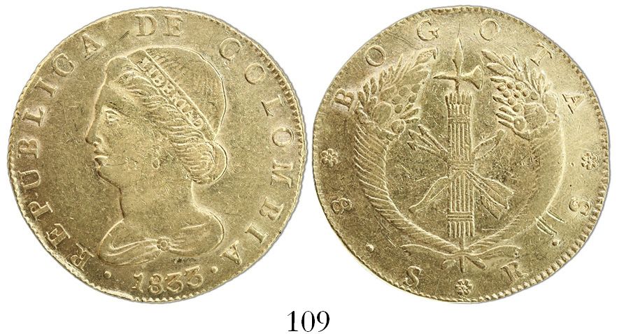 Bogota, Colombia, 8 escudos, 1833RS.