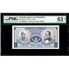 Bogota, Colombia, Banco de la Republica, 1 peso oro, 20-7-1972, serial 00000080, PMG Choice UNC 63 EPQ. SCWPM-404e. Like the prior lot, this note features bold embossing and vivid ink colors as well as a low, two-digit serial number. Minor ink smear on obverse bottom margin from the printing process. PMG #8059474-004.