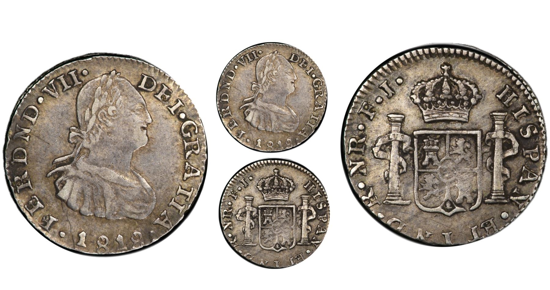 Bogota, Colombia, bust 1/2 real, Ferdinand VII (bust of Charles IV), 1818FJ, PCGS XF45, finest and only example in PCGS census. Restrepo-106.9; KM-69.1; Cal-447. Bold strike but weak in center of reverse, parts of rims weak (as made), attractively toned, tops at PCGS with just two higher at NGC. PCGS #39211395.