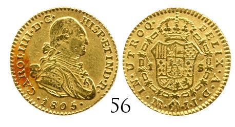Bogota, Colombia, bust 1 escudo, Charles IV, 1805JJ. CT-580; KM-56.1. 3.4 grams. Nice XF, just a few nicks and scratches, red stain on obverse.