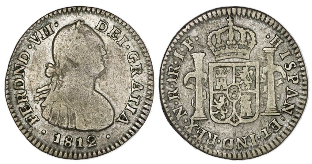 Bogota, Colombia, bust 1 real, Ferdinand VII (bust of Charles IV), 1812JF, doubled-die face.