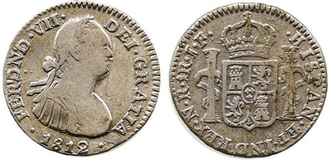 Bogota, Colombia, bust 1 real, Ferdinand VII (bust of Charles IV), 1812JF.