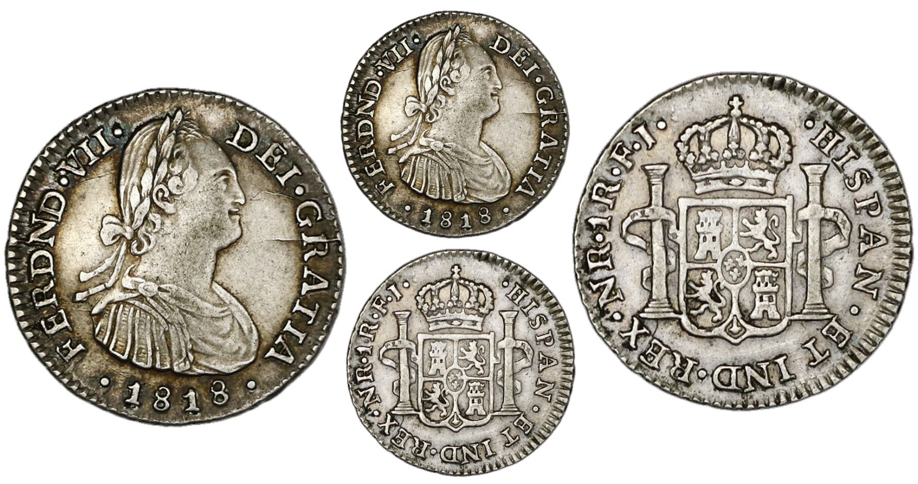 Bogota, Colombia, bust 1 real, Ferdinand VII (bust of Charles IV), 1818FJ.