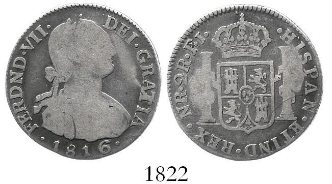 Bogota, Colombia, bust 2 reales, Ferdinand VII (bust of Charles IV), 1816FJ/JJ, rare.