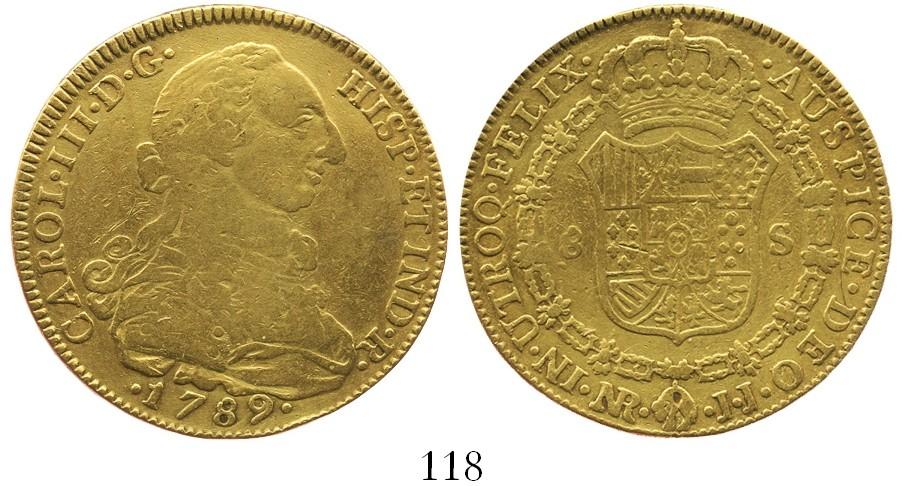Bogota, Colombia, bust 8 escudos, Charles III, 1789JJ.