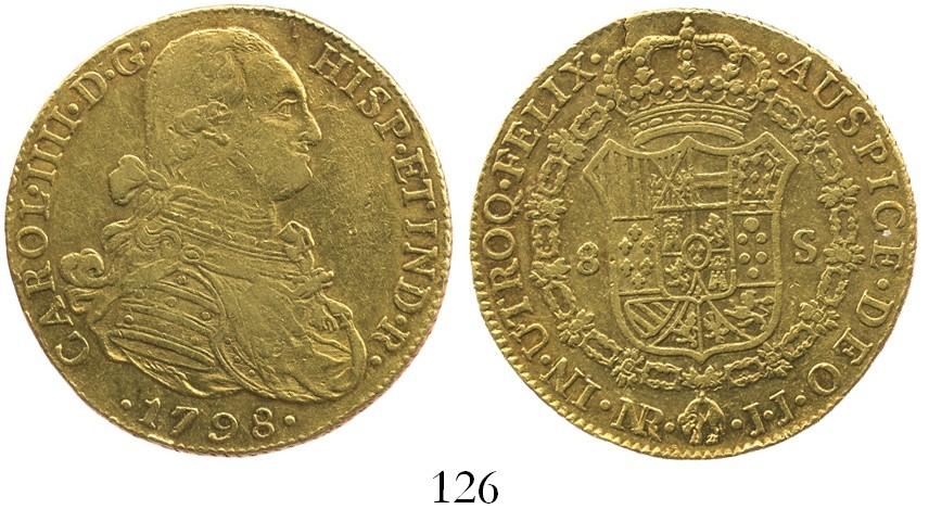 Bogota, Colombia, bust 8 escudos, Charles IV, 1798JJ.