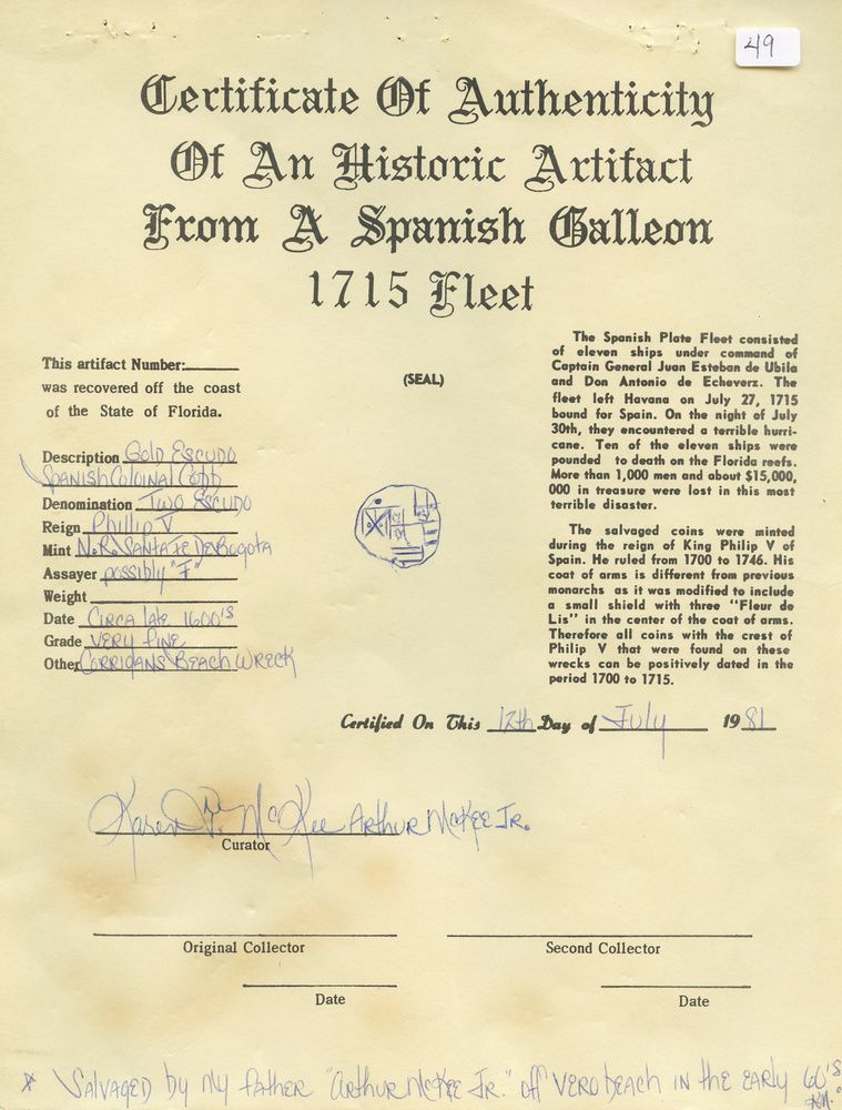 All items are genuine unless noted. Most shipwreck coins and artifacts come with a certificate of authenticity (please check the description for each item). By bidding in this auction you understand and agree to the Terms and Conditions posted here.