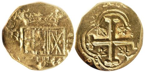 Bogota, Colombia, cob 2 escudos, Philip IV, assayer R to right, mintmark NR to left (early 1650s), from the Maravillas (1656), encapsulated NGC MS 60 / Maravillas treasure. S-B21; KM-4.1. Bold and full cross, nearly full shield and crown (slightly off-center), highly lustrous and lightly red-toned. From the Maravillas (1656), as stated in the slab, with certificate.