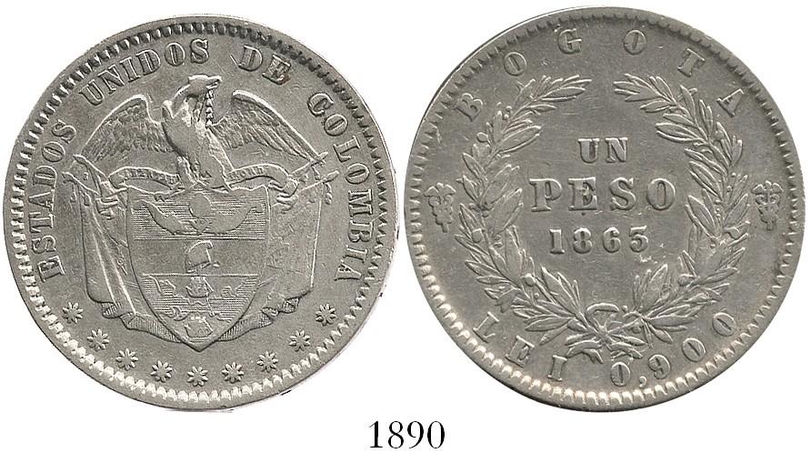Bogota, Colombia, peso, 1863. R-315.2; KM-139.1. 24.8 grams. VF+, nice strike, no toning. Pedigreed to the Norweb and Herman Blanton collections.