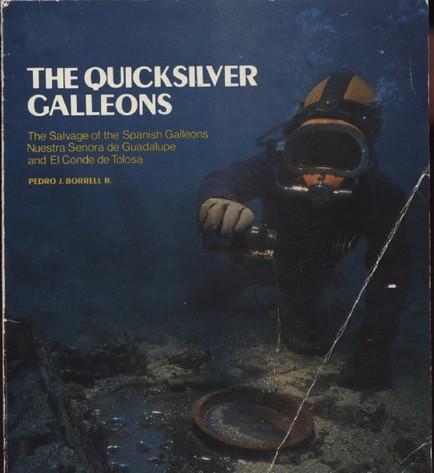 Borrell, Pedro. The Quicksilver Galleons (undated, SC, VG), inscribed by Tracy Bowden. A rare book about the salvage of 2 outbound ships from Spain (Guadalupe and Tolosa) that sank in 1724 off the coast of the Dominican Republic, named the "quicksilver galleons" for their cargoes of mercury, well illustrated. Inscribed by salvager Tracy Bowden over his prologue: "To Mike, I enjoyed working with you" (dated March 1990).