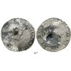 Brabant, Spanish Netherlands (Antwerp mint), portrait ducatoon, Charles II, 1666, rare. KM-79.1. 31.9 grams. Choice portrait with three-dimensional head due to large gouge on other side, very bold legends and high grade (no corrosion), spotty toning, light test-cut and small bumps in edge. With certificate from the salvager (Stenuit). From the Slot ter Hooge, sunk in 1724 off Porto Santo, Madeira Islands