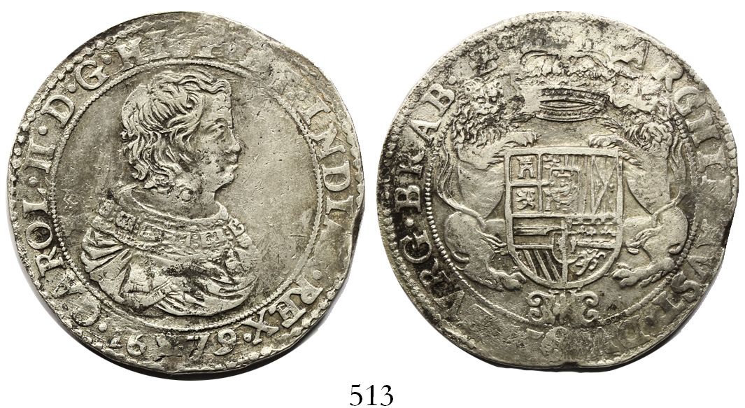 Brabant, Spanish Netherlands (Antwerp mint), portrait ducatoon, Charles II, 1679.