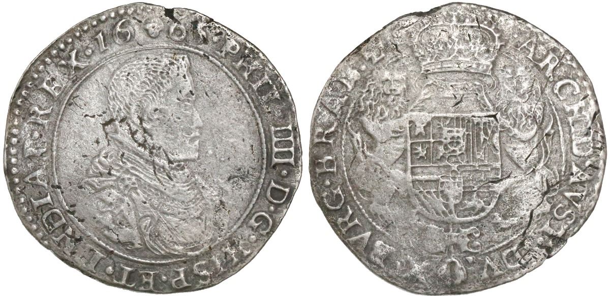 Brabant, Spanish Netherlands (Brussels mint), portrait ducatoon, Philip IV, 1665. KM-72.2. 26.05 grams. Very broad flan with full and bold legends, clear interiors despite light corrosion, very light toning around details. Pedigreed to the Charles Eidel collection, with original (generic) certificate from the salvagers. Recovered from: Merestein, sunk in 1702 off South Africa