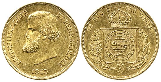 Brazil, 10,000 reis, Pedro II, 1853.