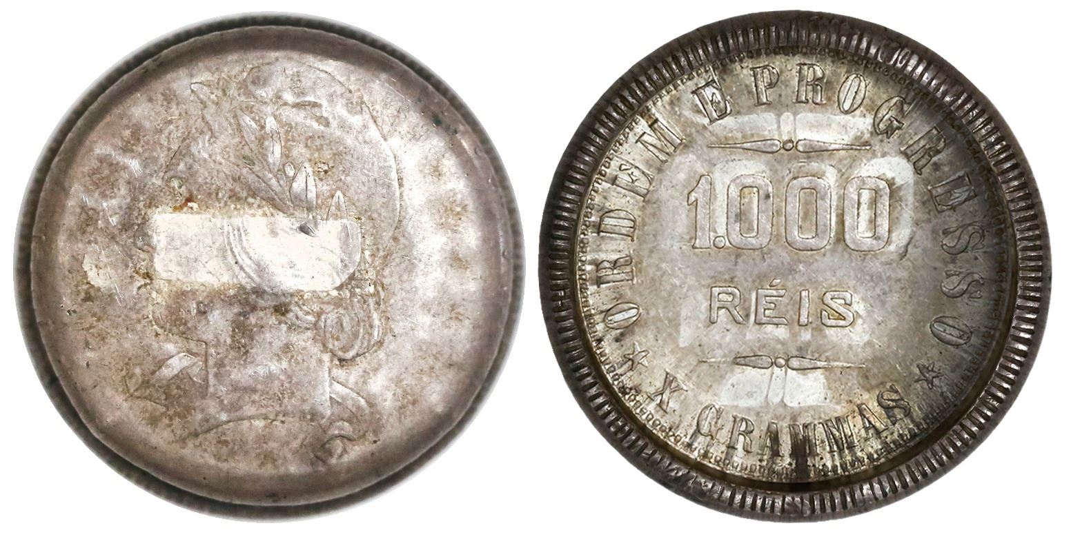 Brazil, 1000 reis, 1911,  capped die  error, very rare.