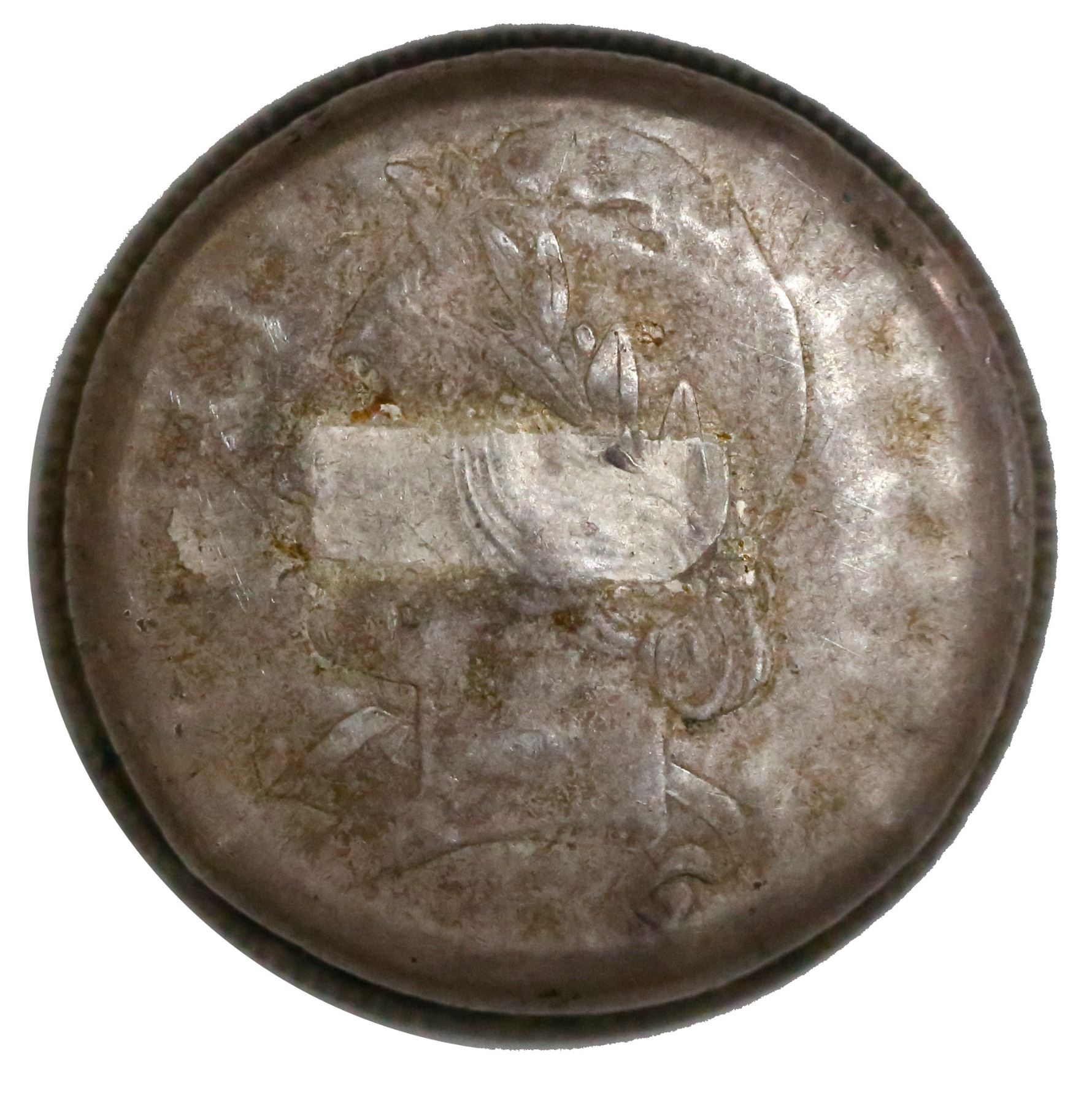 Brazil, 1000 reis, 1911, "capped die" error, very rare. Russo-691; KM-507. 9.80 grams. Fascinating mint error caused by the failure of a struck coin to eject (stuck to hammer die), resulting in that coin "cupping" around the die, distorting and spreading out the metal with each subsequent blow, usually to the point that the edge splits apart in dramatic fashion. Such a piece then becomes a "negative die" for subsequent blanks, causing brockage strikes on those coins. Brockages are far harder to detect during quality control, whereas a "capped die" error is egregious and usually destroyed by the mint. (For an excellent summary of this error in Spanish, known as a "tapa de cuno," see the recent book by Argentine numismatist Ariel Dabbah, Errores de Acunacion [2017], page 69.) This particular example is noteworthy for the fact that the edge has remained intact, and also the full reverse design is visible along with just enough of the spread-out obverse to see the central bust of Liberty and the faint date below, not circulated of course but technically VF or so for handling (also lightly toned with blank strip in toning where tape was removed). Pedigreed to the Ponterio auction of February 1984, with original lot-tag #224.