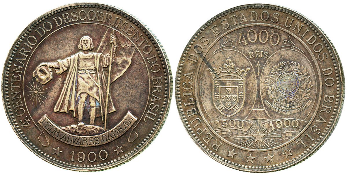 Brazil, 4000 reis, 1900, 400th Anniversary of Discovery of Brazil, variety with 16 rays around star