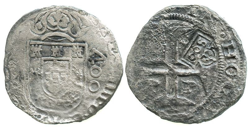 Brazil, 500 reis, crowned-"S00" countermark (1663) on a Porto, Portugal, 400 reis of Joao IV.