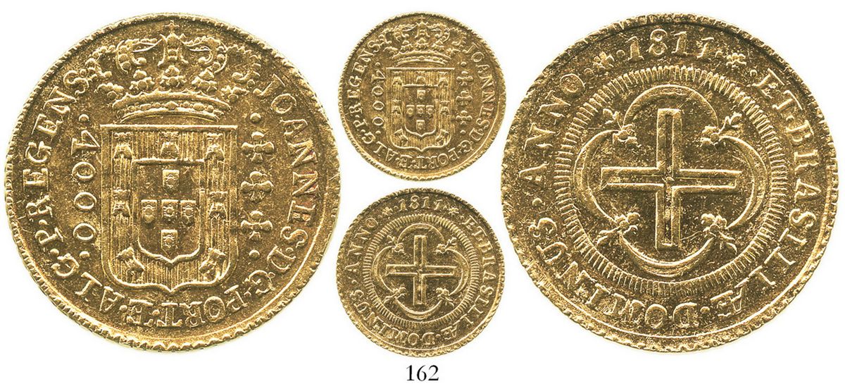 Brazil (Bahia mint), 4000 reis, Joao VI, 1811, date between flowers. R-O550a; KM-235.1. 8.2 grams. Lustrous Mint State, no problems, much rarer than Rio mint. Pedigreed to the New England Collection.