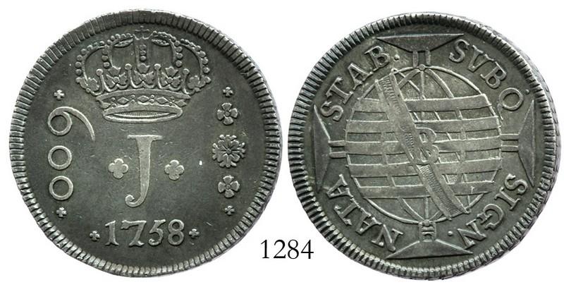 Brazil (Bahia mint), 600 reis, 1758-B. KM-179. 18.6 grams. Richly toned XF, no problems, choice full rims, rather attractive.