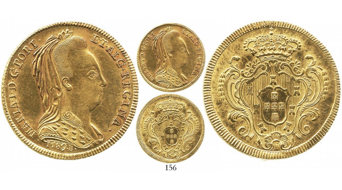Brazil (Bahia mint), 6400 reis, Maria I (widow bust), 1789-B. R-O506; KM-218.2. 14.2 grams. AU with light hairlines on obverse only, rare grade for Bahia mint. Pedigreed to the New England Collection.