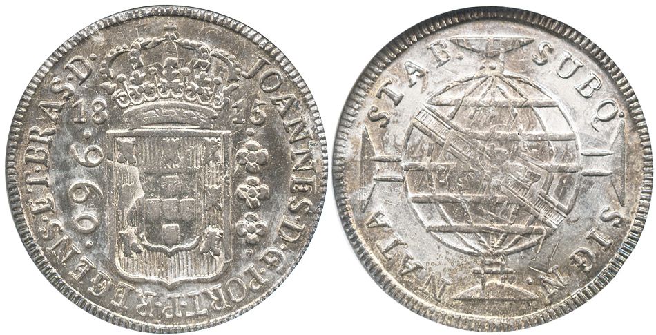 Brazil (Bahia mint), 960 reis, 1815-B, encapsulated NGC MS 64, tied for finest known graded by NGC.