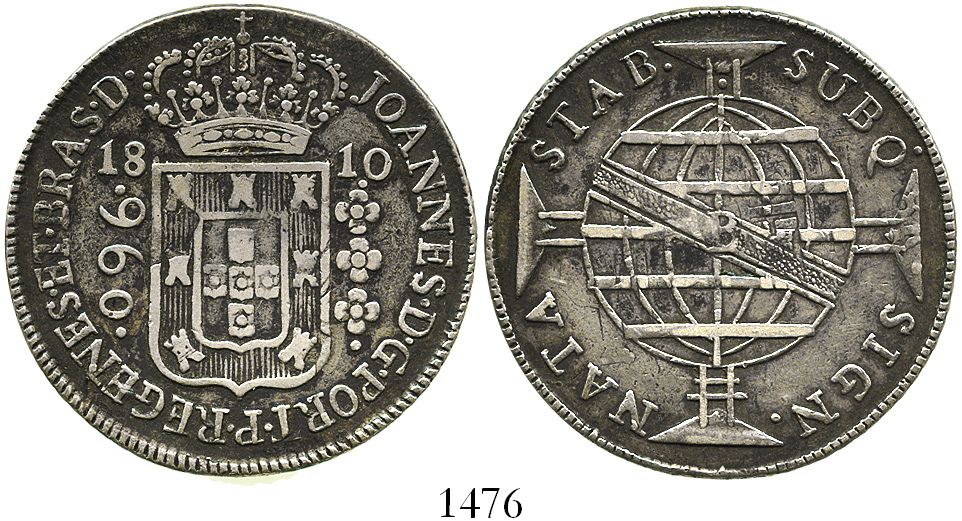 Brazil (Bahia mint), 960 reis, Joao VI, 1810-B, REGENES, struck over a Spanish colonial bust 8 reales of Charles IV. KM-307.1. 26.7 grams. AXF with choice, contrasting toning on fields. With old, original collector's paper envelope with handwritten notes.