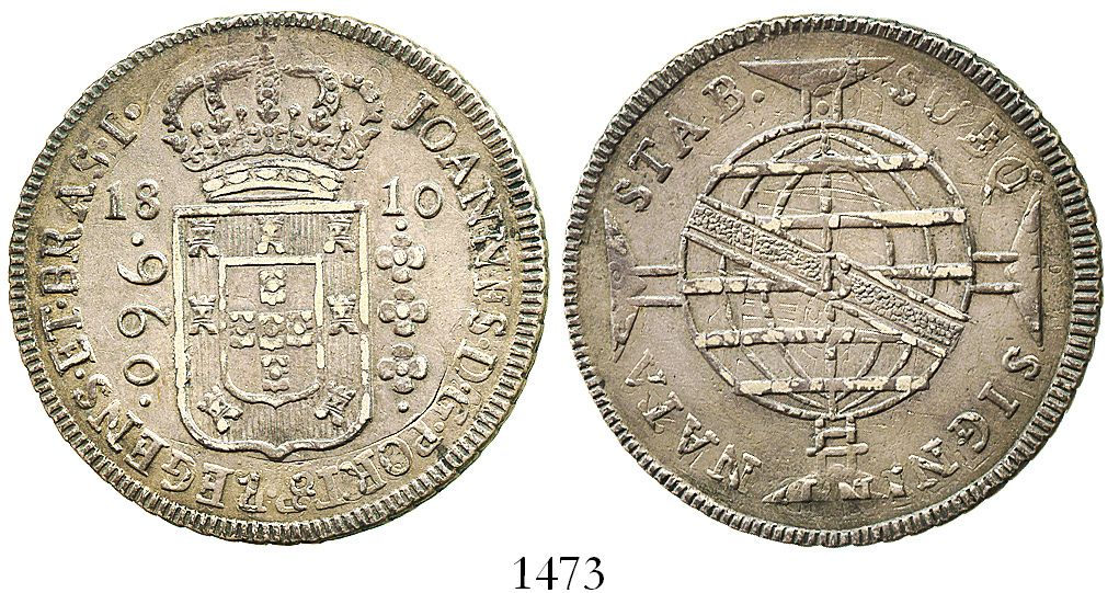 Brazil (Bahia mint), 960 reis, Joao VI, 1810-B, struck over a Santiago, Chile, bust 8 reales of Ferdinand VII, 1808FJ, rare. KM-307.1. 27.0 grams. Undercoin date and mintmark fully visible (rare thus), nicely toned XF+ with underlying luster. With old, original collector's paper envelope with handwritten notes.
