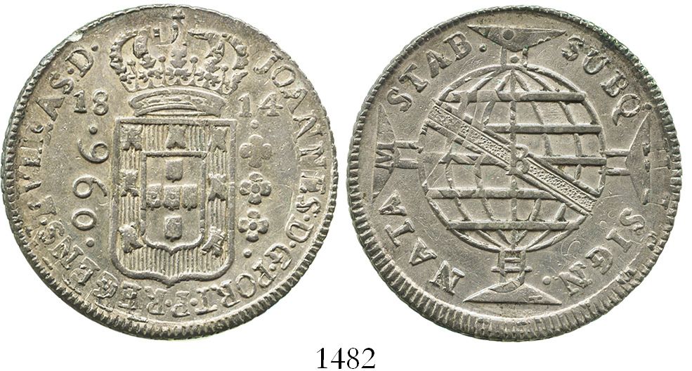Brazil (Bahia mint), 960 reis, Joao VI, 1814-B, struck over a Cadiz, Spain, bust 8 reales of Ferdinand VII, 1811CJ, rare. KM-307.1. 26.4 grams. Lustrous and lightly toned XF+ with lots of undercoin details visible. With old, original collector's paper envelope with handwritten notes.