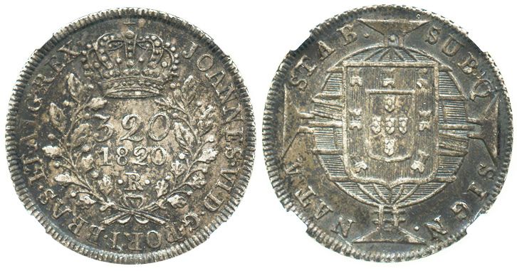 Brazil (Rio mint), 320 reis, 1820-R, encapsulated NGC AU 58.