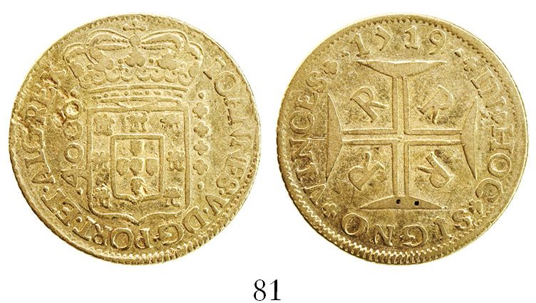 Brazil (Rio mint), 4000 reis, Joao V, 1719-RRRR. Russo-171; KM-102. 10.47 grams. VF with minor (natural) planchet flaw at REX.