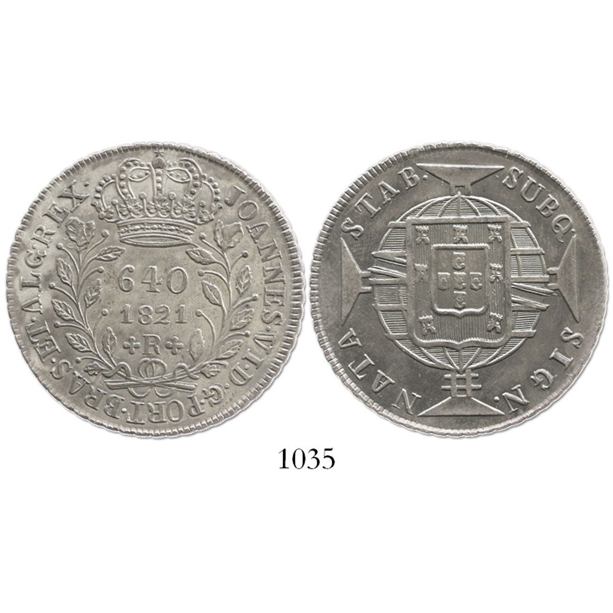 Brazil (Rio mint), 640 reis, 1821-R. KM-325.2. 17.8 grams. Deeply toned XF+.