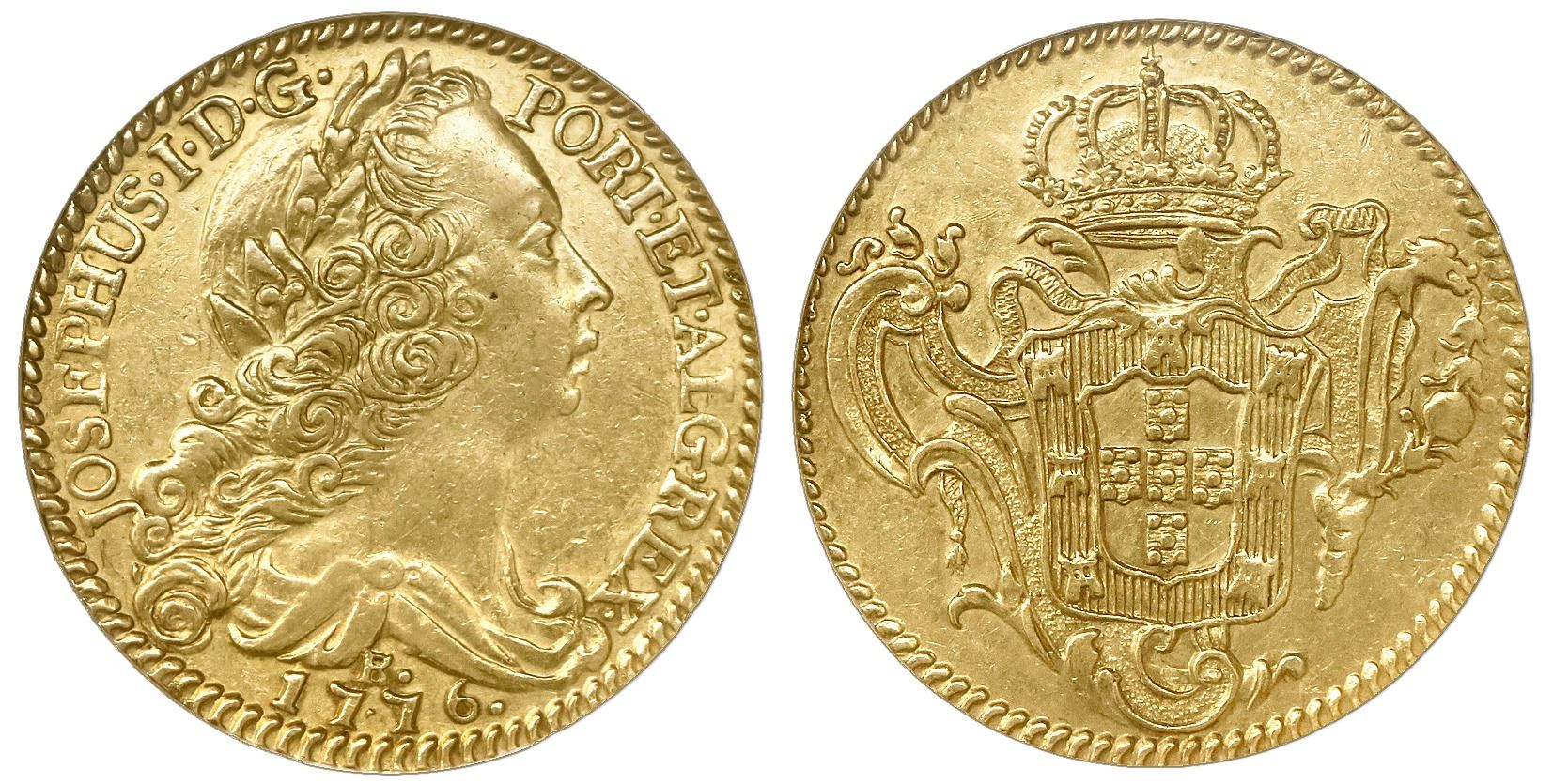 Brazil (Rio mint), 6400 reis, Jose I, 1776-R, NGC AU 53, ex-Eliasberg (stated on label). Russo-444; KM-172.2. Very bold strike with smooth surfaces (probably lightly polished once), nice light toning, popular date and pedigree. Pedigreed to the Eliasberg collection. NGC #1839118-103.