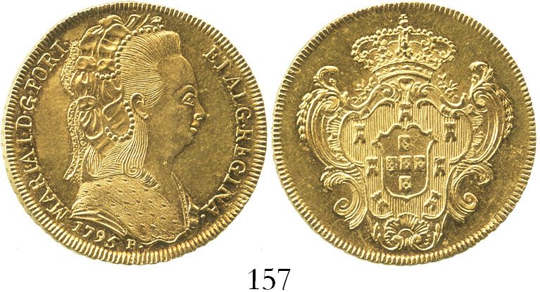 Brazil (Rio mint), 6400 reis, Maria I, 1795-R. R-O533; KM-226.1. 14.2 grams. Highly lustrous Mint State with die-crack near right side on reverse.