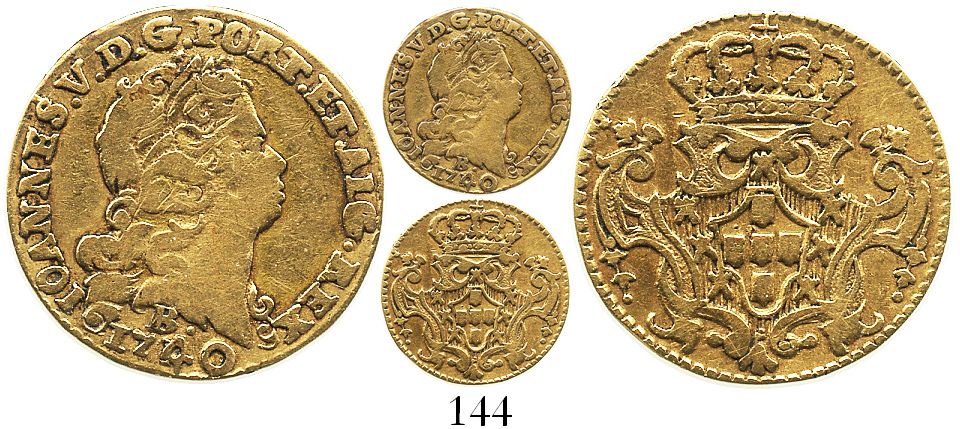 Brazil (Rio mint), 800 reis, Joao V, 1740-B, unique with 4/3 in date. R-O110 but with 4/3 (unlisted); KM-123. 1.5 grams. Extremely rare for the mint, date and denomination, the type alone missing in most major collections, this date particularly rare and the overdate unique, also unusually rare quality as problem-free (VF with toning around details), for specimens of this type usually have holes or repairs. Pedigreed to the New England Collection.