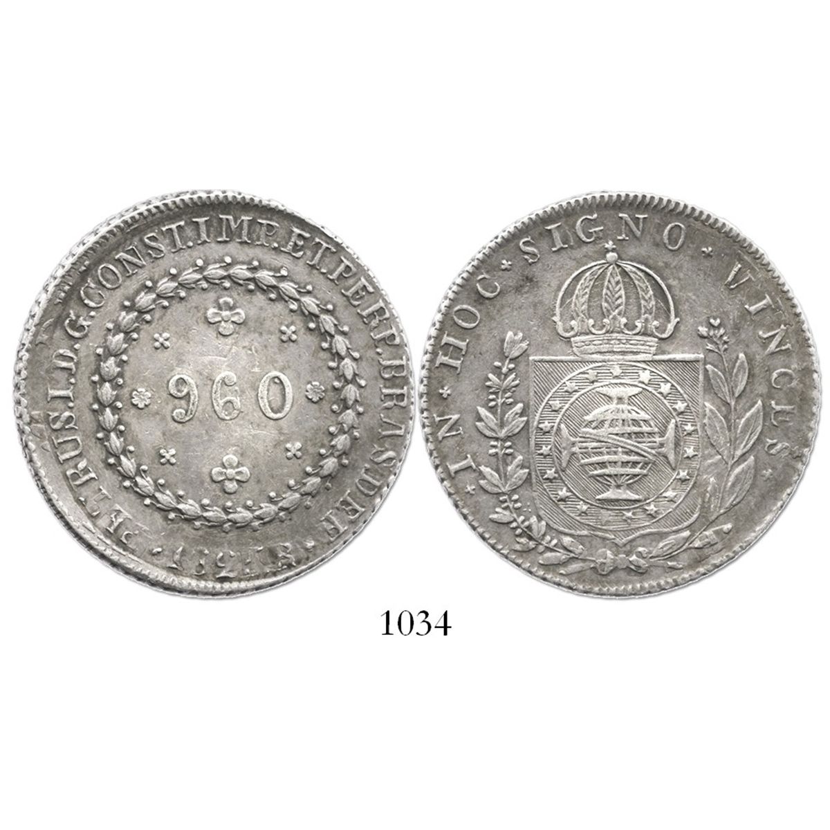Brazil (Rio mint), 960 reis, 1824-R, struck over a Spanish colonial bust 8R of Charles IV.