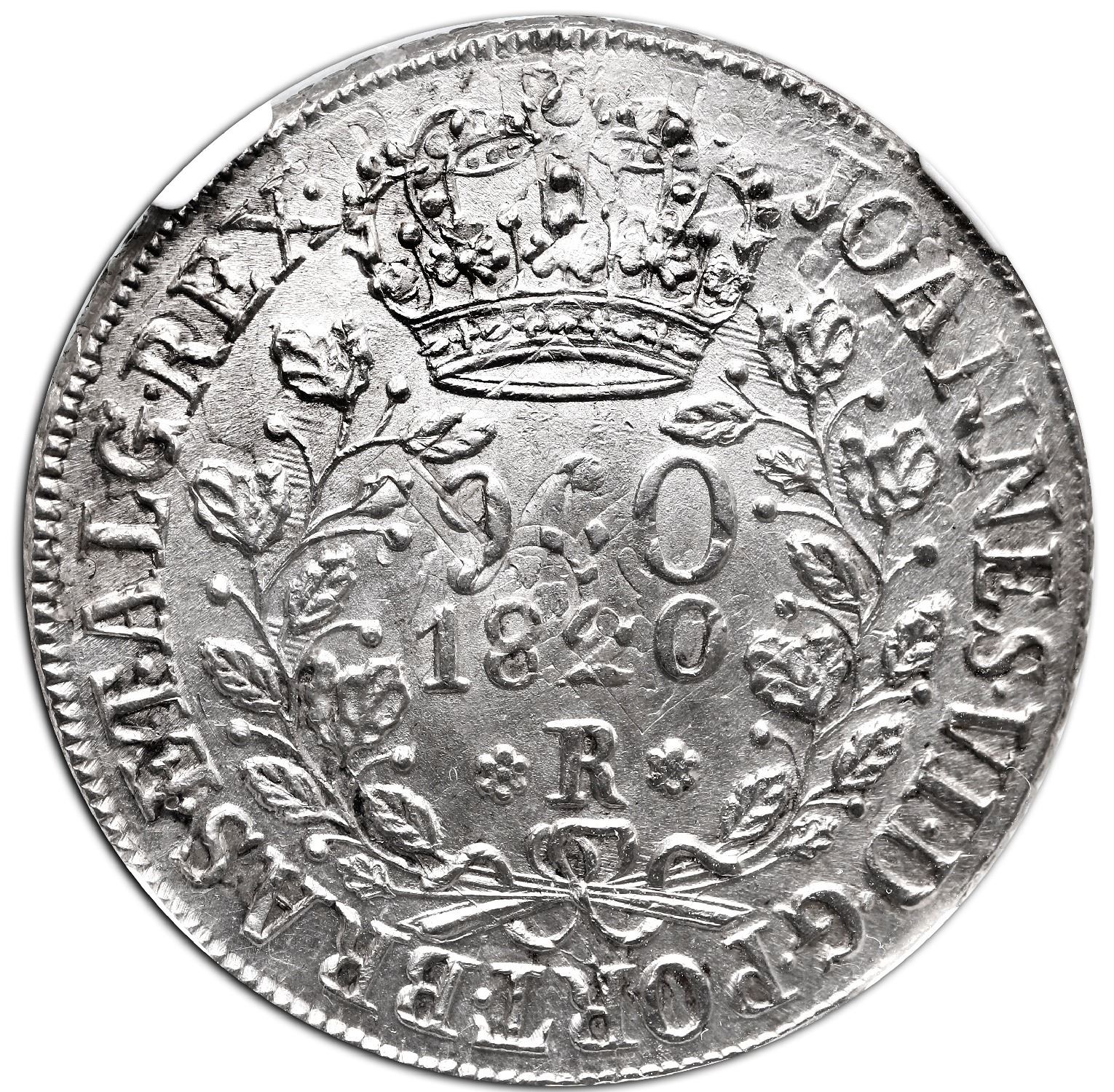 Brazil (Rio mint), 960 reis, Joao VI, 1820-R, struck over a Potosi, Bolivia, bust 8 reales of Charles IV, assayer PJ, NGC MS 62. Russo-478; KM-326.1. Somewhat frosty with luster, fully detailed overstrike with traces of under-coin visible, particularly the assayer PJ. Please use this link to verify the certification number