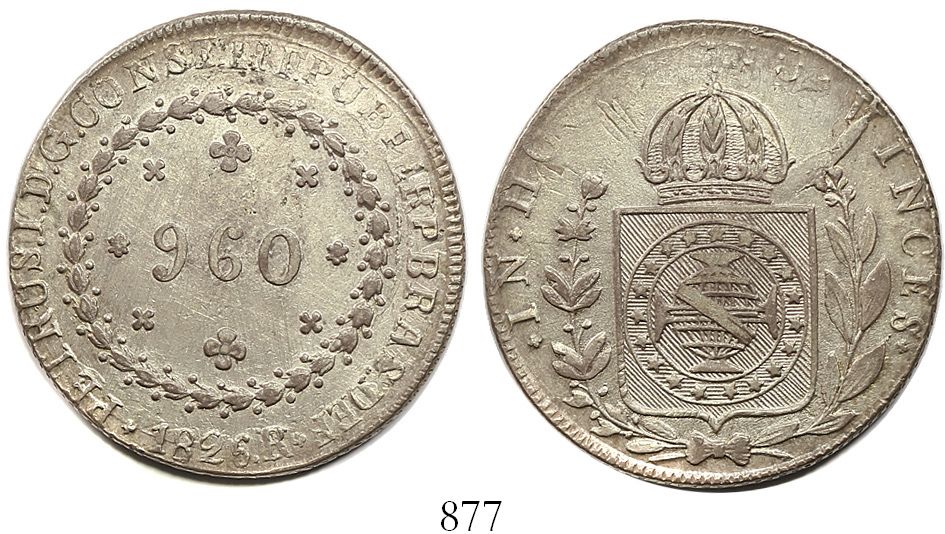 Brazil (Rio mint), 960 reis, Pedro I, 1826-R, struck over a Mexican Republic cap-and-rays 8 reales.