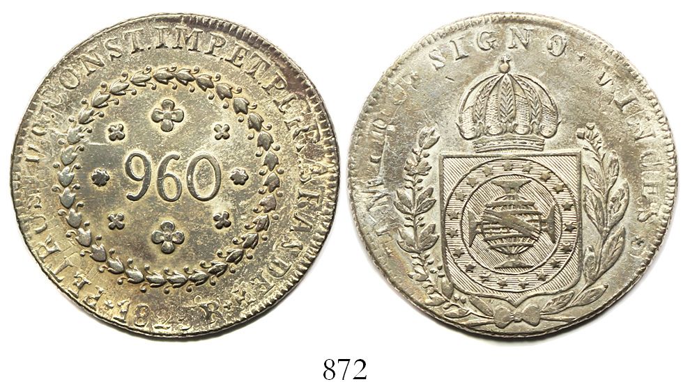 Brazil (Rio mint), 960 reis (large digits, rare), Pedro I, 1825-R, struck over a Spanish or Spanish