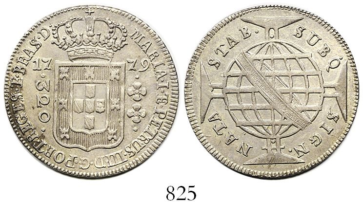 Brazil (struck in Lisbon), 320 reis, Maria I and Pedro III, 1779.