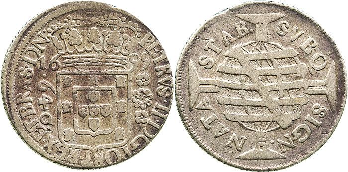 Brazil (struck in Lisbon), 640 reis, 1699. KM-90.1. 18.8 grams. Off-center AVF with hint of toning, minor rim-flaw.