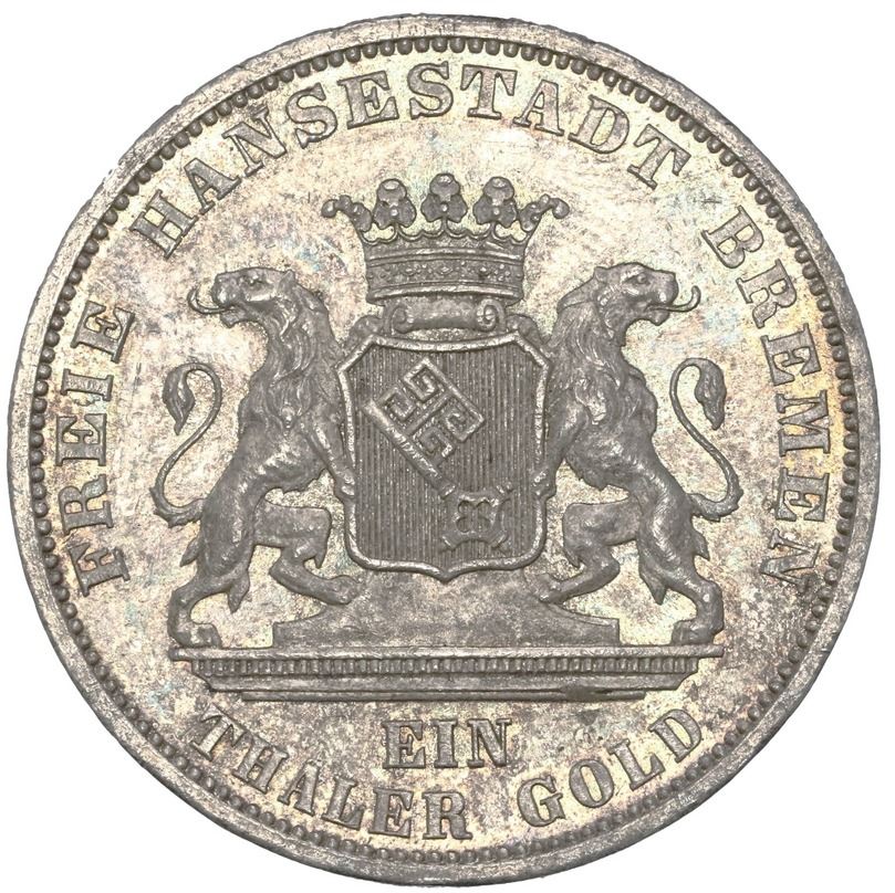 Bremen (German States), taler, 1871-B, Franco-Prussian War victory, NGC MS 64.