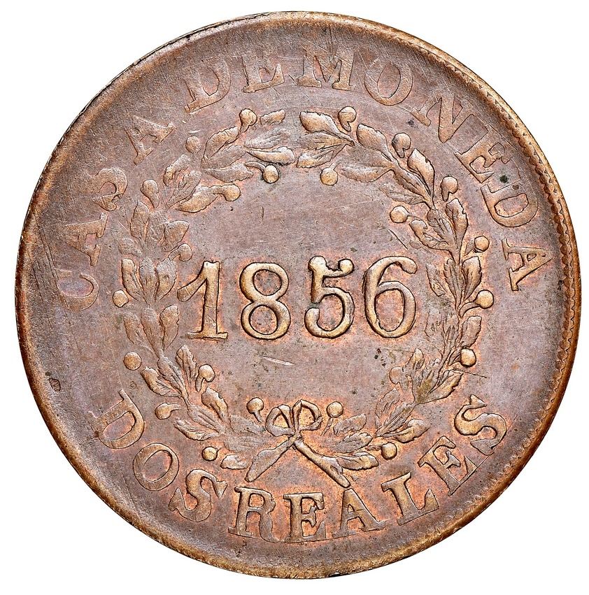 Buenos Aires, Argentina, 2 reales, 1856, NGC MS 62 BN, finest known in NGC census, ex-O'Brien.