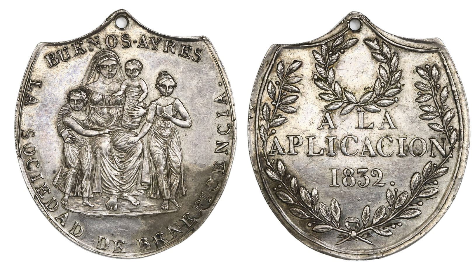 Buenos Aires, Argentina, silver medal, 1852, Premio a La Aplicacion (prize), Sociedad de Beneficenci